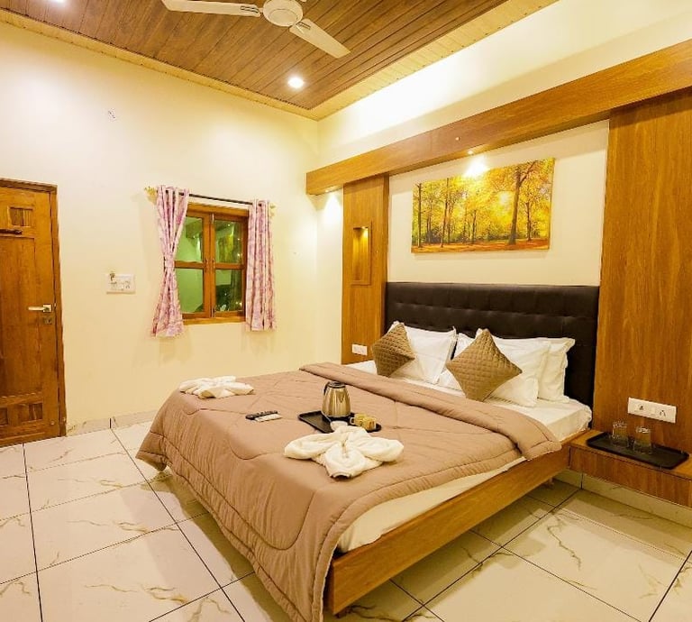 Enjoy a serene stay in our Deluxe AC Room, featuring modern amenities for your comfort.